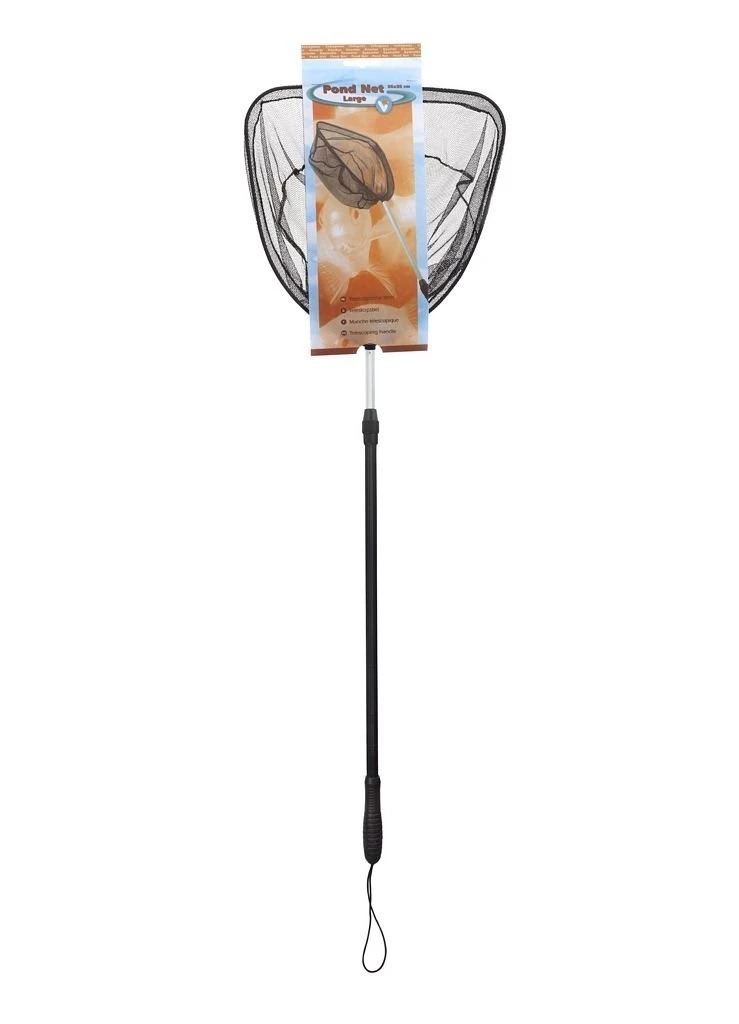 Multifunctionele vis- en vijvernetten. Met de telescopische steel kun je zelf de lengte van het schepnet bepalen.